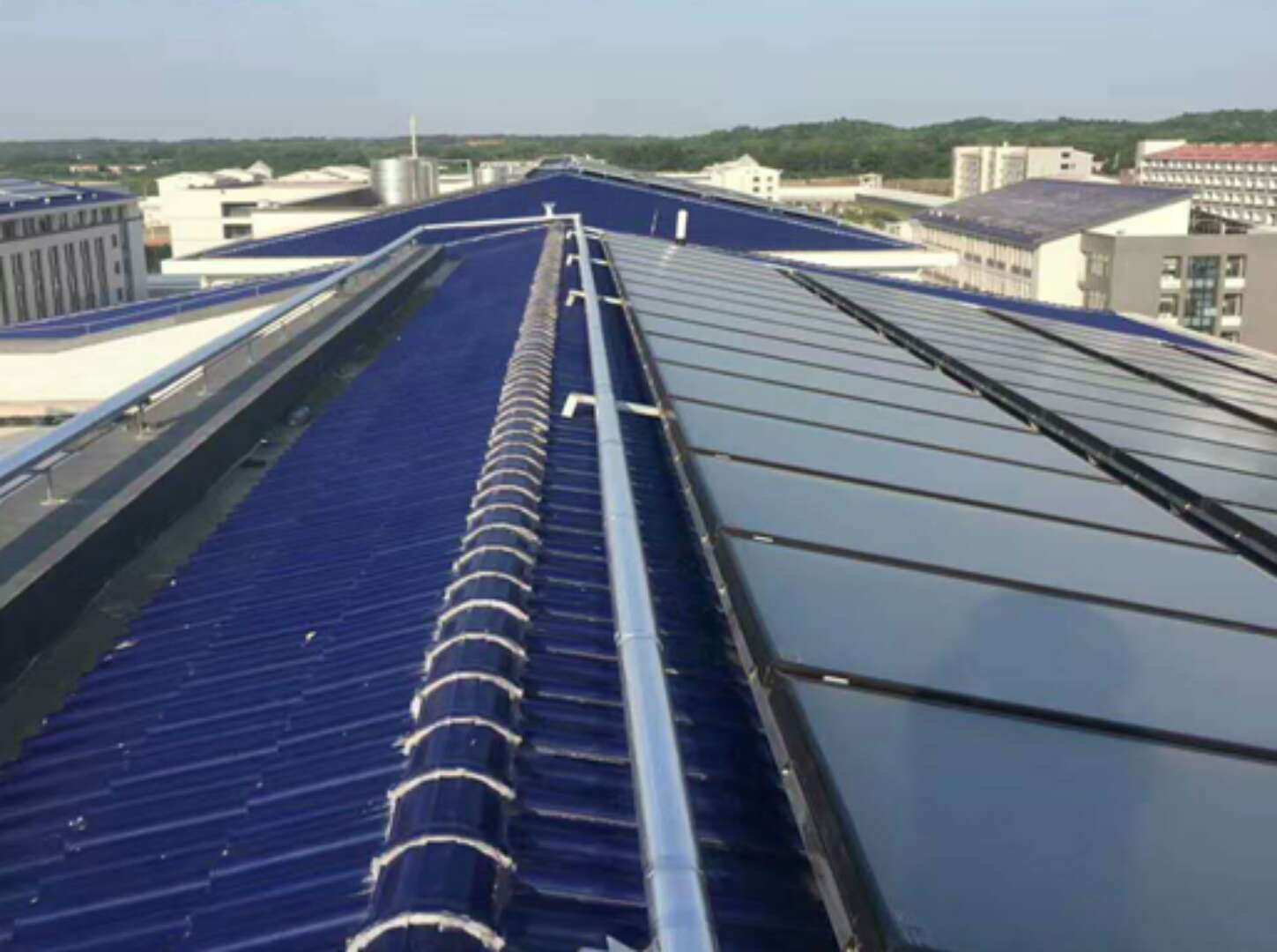 麓山所位于湖南省长沙市岳麓区坪塘街道莲花山村,由湖南省戒毒管理局投资建设,总建筑面积约67780平方米。该热水项目由平板太阳能集热器与空气源热泵热水器相结合,最大强度利用太阳能与空气能,为麓山所提供了最优质的热水服务。